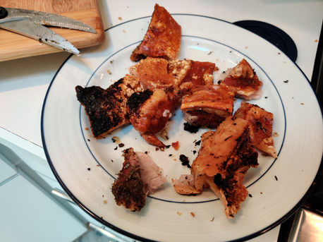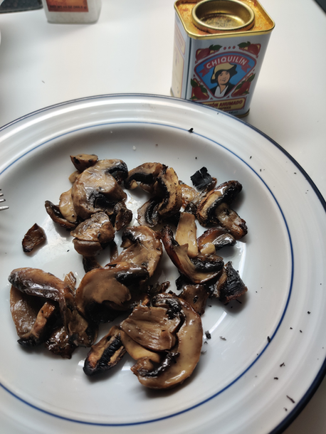 Ayer hice la receta del pollo y los champiñones en el Kamado. Cuando saqué el pollo, se me olvidaron las setas. Cuando fuí a ver, estaba todo chamusqueado, el hilo se había quemado y el papel estaba encendido por fuera, casi cenizas. Para mí asombro, una vez pude abrirlo con cuidado, las setas sobre